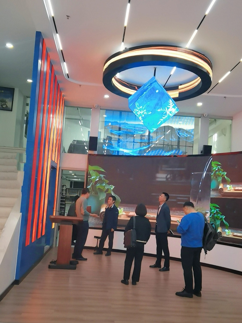 在總經理惠鴻旭的陪同下,京東方的領導們參觀了湖北旭峰展廳,詳細了解旭峰發展歷程、展廳產品布局、產品維修售后等各方面情況。