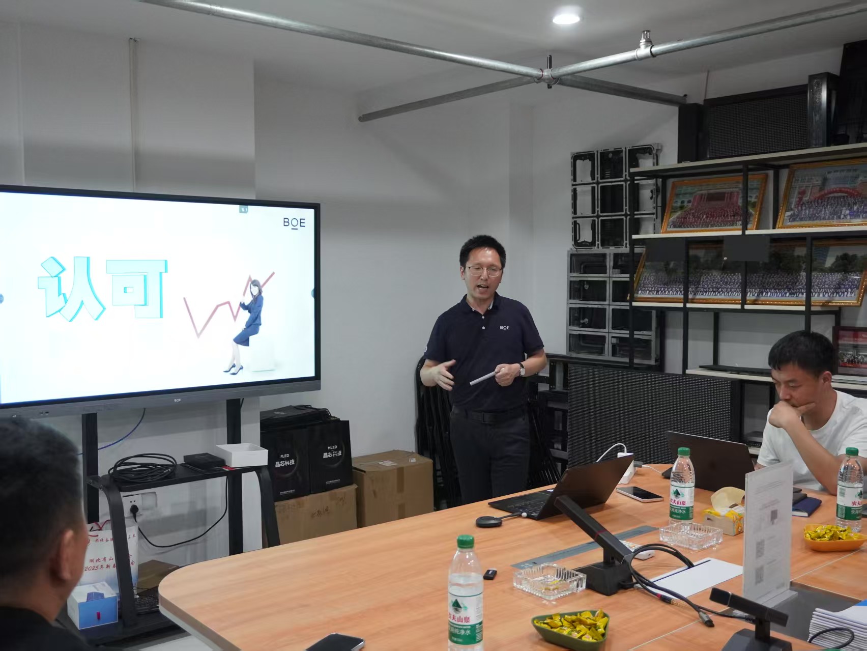 結束武漢京東方B17工廠的深度參觀后,與會嘉賓前往至湖北旭峰偉業展廳(京東方服務體驗中心)。進入深度交流分享,我們特邀BOE MLED業務湖北省負責人劉慶分享《未來BOE MLED發展方向》,京東方MLED湖北辦事處李華偉、王緒煉與大家分享了《BOE集團發展歷程及顯示屏全鏈路產品講解及解決方案》,為大家破解顯示工程落地難題,也為工程服務商提供定制化采購方案。我們并肩同行,一起交流、成長、共贏!