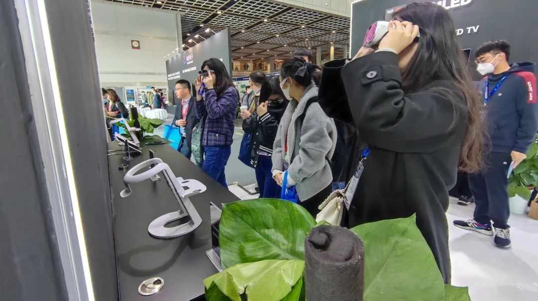 α-MLED展區內,一款65英寸8K Mini LED超薄壁紙電視極為吸睛,該產品采用了京東方首創的玻璃基主動式新型LED顯示系統及解決方案,高達3024個分區實現精準控光,帶來高亮度、高色域、高對比度的極致絢麗的視覺享受,不僅如此,該產品還采用全玻璃化設計,將整機厚度控制在13毫米以下,實現如壁紙一般的極致超薄機身,讓電視像藝術品一樣融入家庭裝飾,重新定義了家用電視的行業標準。值得一提的是,該產品還斬獲了本屆“CDIA年度最佳創新顯示組件獎銅獎”。