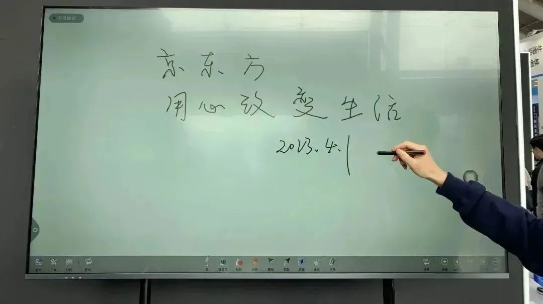 此外,京東方還重磅推出全球首款65英寸超大尺寸觸控智慧屏,搭載了京東方自主研發的OGM電容觸控技術,支持10指觸控,帶來極致流暢絲滑的觸控操作體驗,同時采用極窄邊框設計,實現超過98%的超高屏占比,在商務辦公、家庭娛樂、教育教學等領域具有廣闊的應用空間。