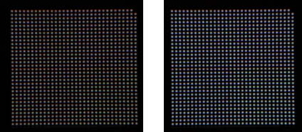 拼接縫是小間距顯示屏的頑疾,具體表現(xiàn)為顯示屏上在拼接縫處出現(xiàn)亮暗線。這是由于顯示屏本身的特點(diǎn)導(dǎo)致的,很難通過(guò)工藝和結(jié)構(gòu)的方式解決。通過(guò)在Nova校正系統(tǒng)中植入專門的處理算法,拼接縫問(wèn)題迎刃而解。