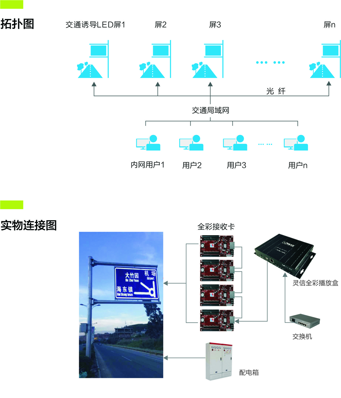 交通誘導室外顯示系統一般由室外顯示屏、主指揮中心控制系統(分指揮中心控制系統)、通訊系統等部分組成。室外顯示屏通過有線或無線方式連接到主中心或分指揮中心的通訊服務器。根據交通誘導信息室外顯示系統要實現的功能,系統總體采用分布式多級控制方式。能夠接受主中心、分中心、本地三級控制。